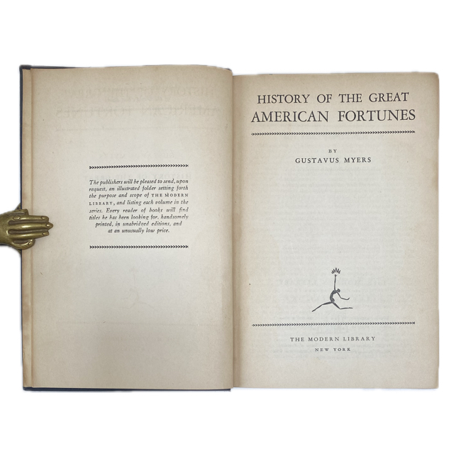 1936. MYERS, Gustavus. “History of the Great American Fortunes”