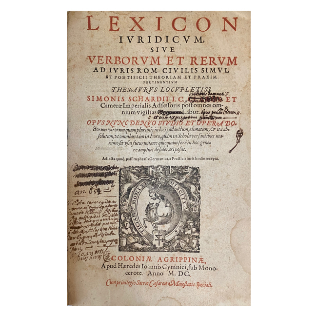 1600. SCHARD, Simon. “Lexicon Iuridicum…”