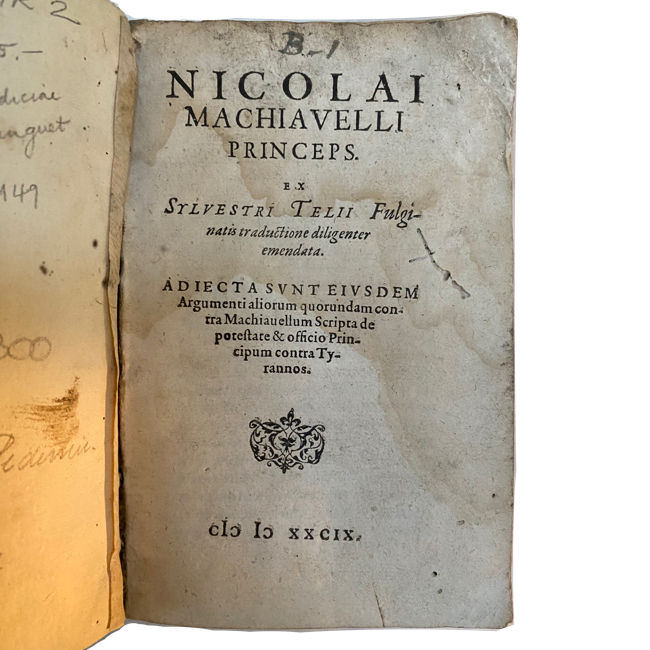 1589. MACHIAVELLI, Niccolo (+) STEPHEN Junius Brutus. “Princeps. ex Sylvestri Telii Fulginatis” (+) “Vindiciae contra tyrannos”