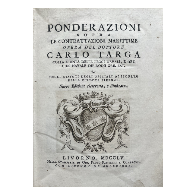 1755. TARGA, Carlo. “Ponderazioni sopra le Contrattazioni Marittime”