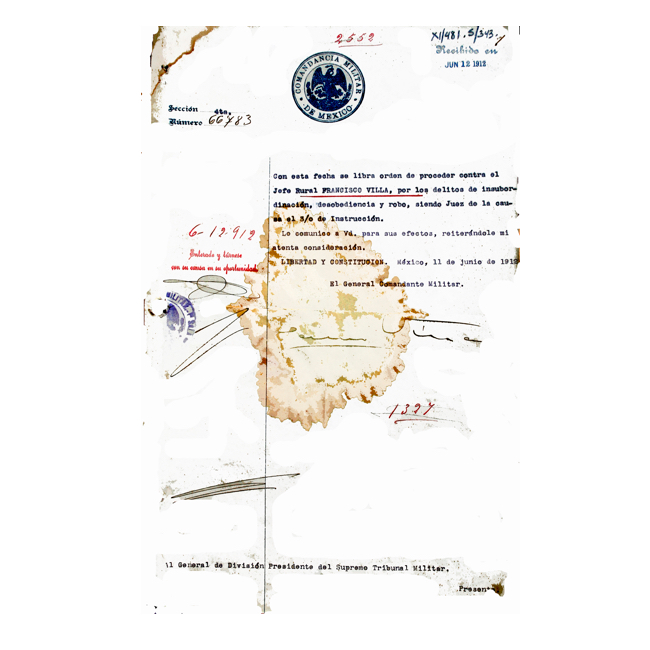 1912. “Causa contra Villa por los delitos de insubordinación, desobediencia y robo”