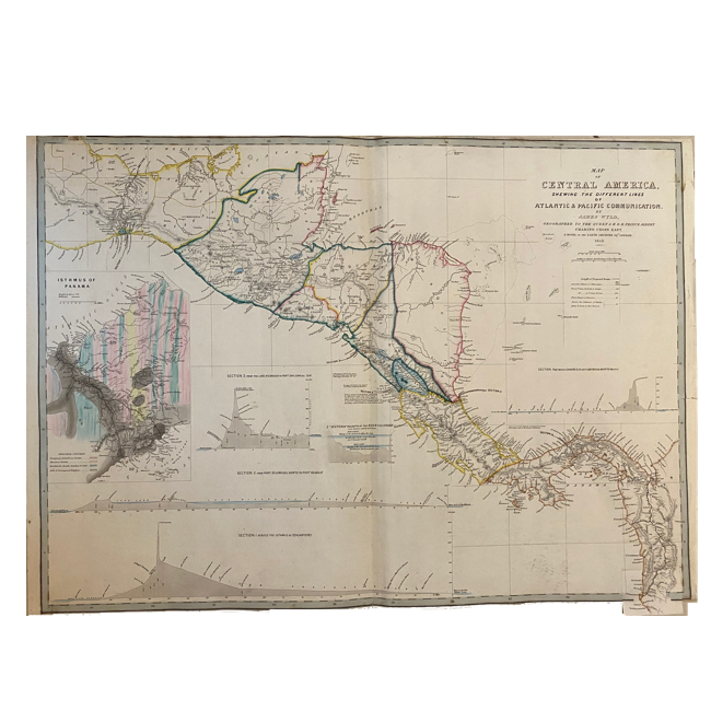 1853. WYLD, James. “Map of Central America, shewing the Different lines of Atlantic & Pacific Communication”