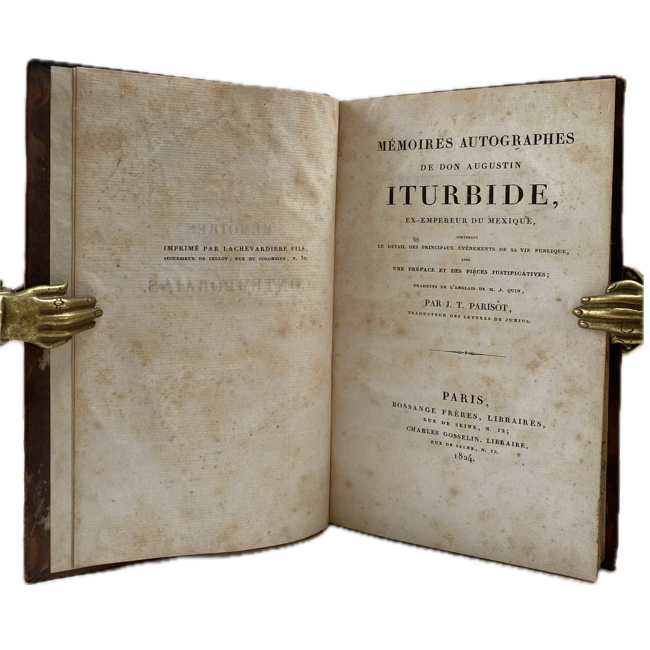 1824. ITURBIDE, Agustín. “Mémoires Autographes de Don Agustín Iturbide, Ex-Empereur du Mexique…”