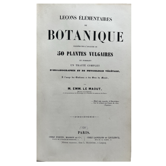 1844. LE MAOUT, Emmanuel. “Leçons Élémentaires de Botanique “