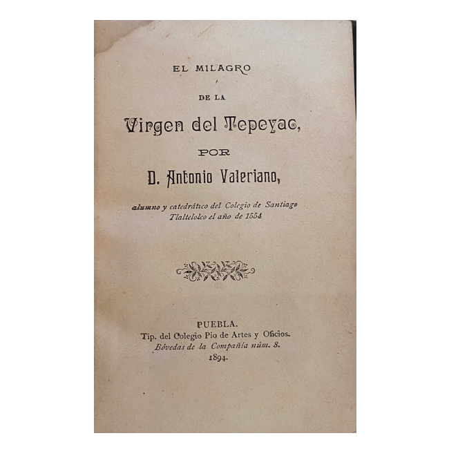 1895. VALERIANO, Antonio. “El Milagro de la Virgen del Tepeyac”