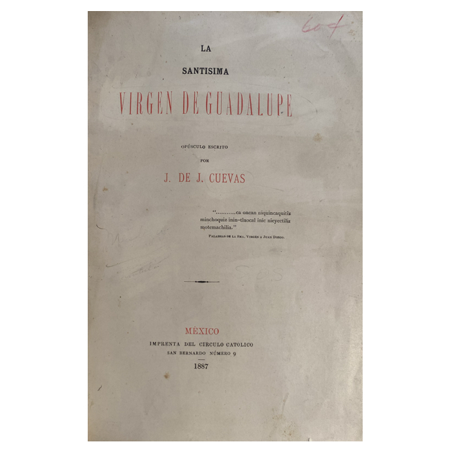 1887. CUEVAS, J de J. “La Santísima Virgen de Guadalupe”