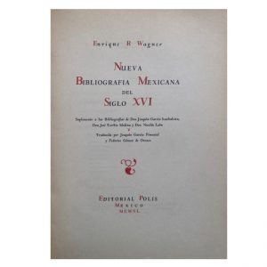 1946. WAGNER, Enrique R. “Nueva Bibliografía Mexicana del Siglo XVI”