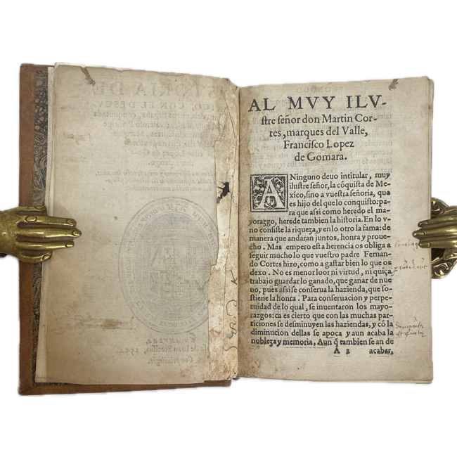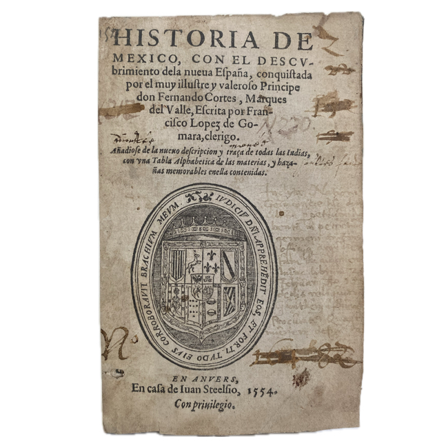 La obra fue prohibida en Nueva España por el Consejo de Indias en 1553 por considerarse demasiado favorable a Cortés, lo que aumenta el interés y rareza de estas primeras ediciones extranjeras (como esta de Amberes, 1554).