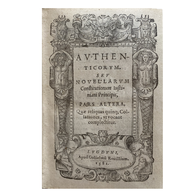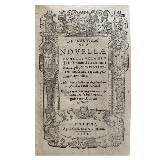 Título: “Authenticae seu Novellae Constitutiones D. Iustiniani Sacratissimi Principis”.
