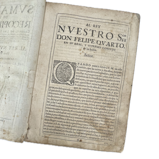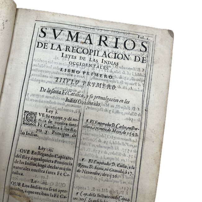 1677. AGUILAR y ACUÑA, Rodrigo. “Sumarios de la Recopilacion General de las Leyes de Indias”