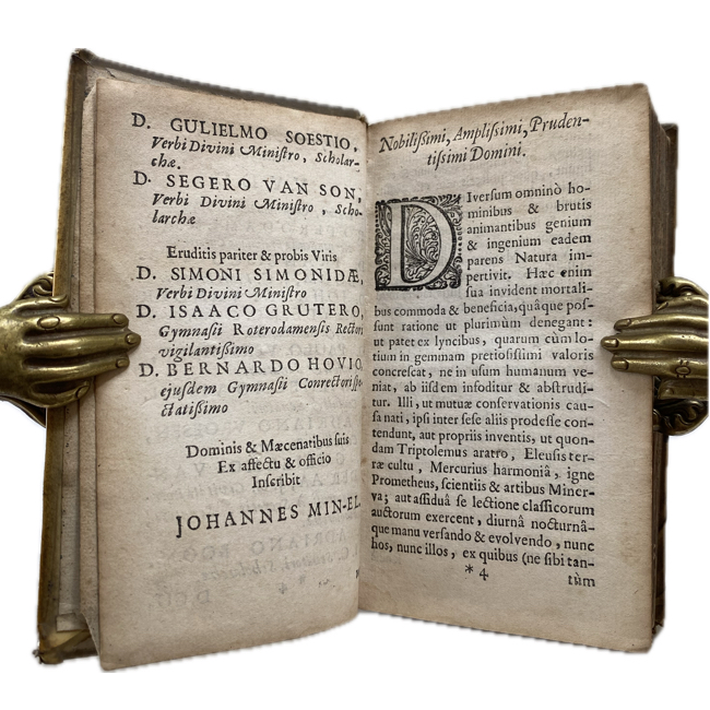 Corregido por Johannis Min-ellii (Juan/Jan Minellius), humanista neerlandés especializado en ediciones latinas de autores clásicos; su trabajo suele incluir anotaciones y comentarios para uso académico. Esta edición combina el texto clásico con anotaciones explicativas para estudiantes (in usum studiosae juventutis) y funciona casi como un comentario ilustrado del texto latino.