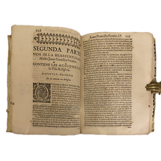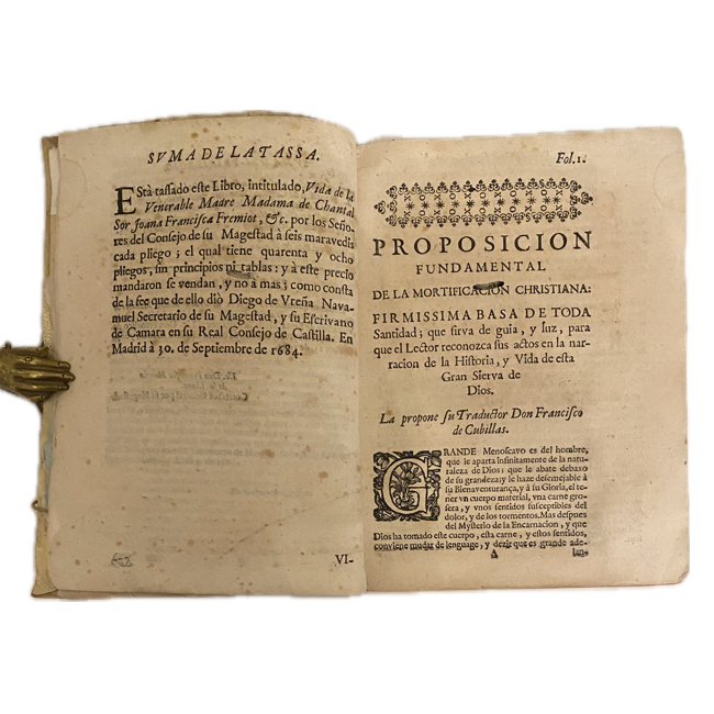 Primera biografía traducida al español de esta Santa francesa, fundadora en España de la Orden de las Salesas. La obra contiene un prólogo del autor —en el que revaloriza la mortificación cristiana— y, a continuación, la biografía en sí misma de Juana de Chantal. Está dividida en tres partes: la primera dedicada a su niñez, juventud y desempeño como esposa, madre y viuda; la segunda a su vida y actividades en la vida religiosa; y la tercera incluye las prácticas de las virtudes heroicas, que se glosa con episodios y extractos de su correspondencia personal.
