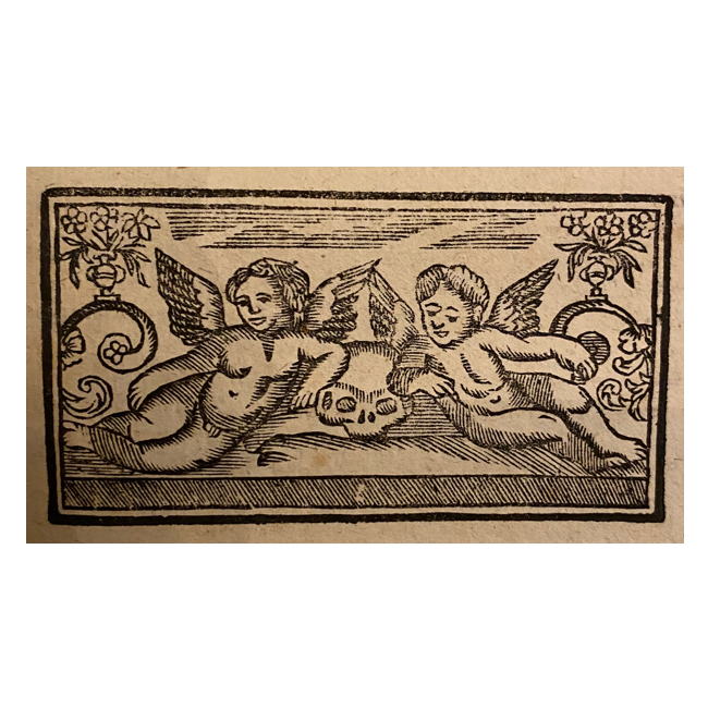 8º. [4] h., 388 p., [3] h. Pergamino de época, título manuscrito en lomo; broches de hilo rotos pero presentes. Portada con orla tipográfica; primera hoja blanca con reparación y algunas roturas; surcos de polilla a lo largo de las hojas con muy ligera afectación de textos.