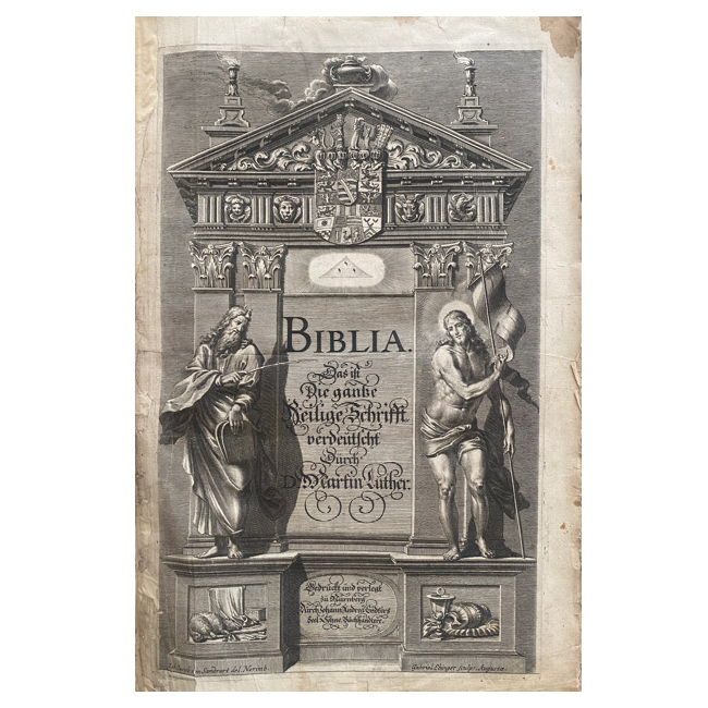 Biblia, es decir: La Escritura completa, Antiguo y Nuevo Testamento en alemán, del Doctor Martín Lutero. Explicada por varios teólogos competentes según el sentido literal de las palabras… junto con los principales símbolos cristianos, e incluida una breve exposición de la Confesión de Augsburgo.