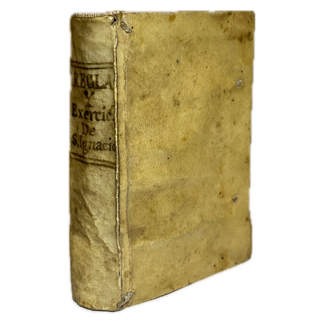 Ejemplar facticio novohispano que reúne dos impresos jesuitas poblanos de 1698: un texto normativo institucional de la Compañía de Jesús y la edición local de los Exercicios espirituales de san Ignacio de Loyola, ambos destinados a la formación, disciplina y práctica espiritual en el ámbito de los colegios jesuitas de la Nueva España.