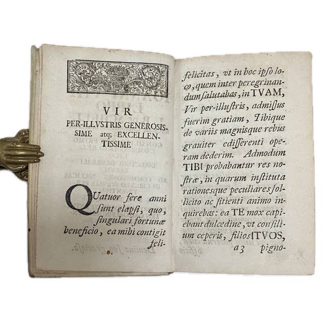8º. [14], 740, [46] p. + frontispicio. Pergamino de época con título manuscrito en negro sobre lomo; pequeña etiqueta en parte superior de lomo. Antiguo nombre manuscrito en guarda anterior y en página de título. Subrayados ocasionales y anotaciones marginales en textos.