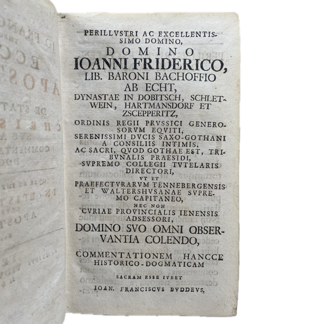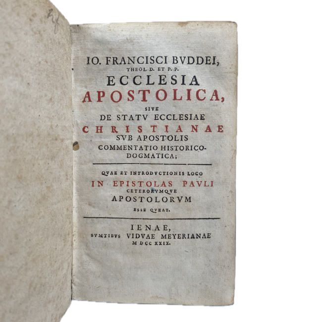 1729. BUDDEUS, Johann Franz. “Ecclesia Apostolica…”