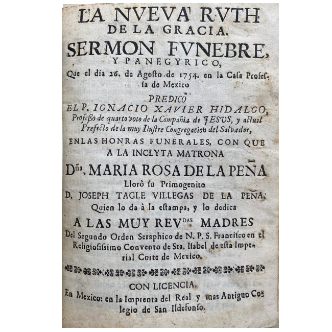 La Nueva Ruth de la Gracia. Sermón fúnebre y panegyrico – México, Imprenta del Real y más antiguo Colegio de San Ildefonso, 1754