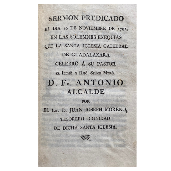 Sermón de Solemnes exequias (Fr Antonio Alcalde) – Guadalaxara, 1792