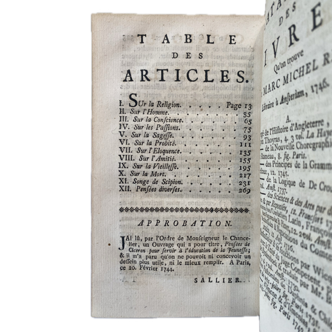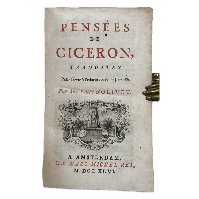 Rara colección de fragmentos de las obras de Cicerón, con propósito educacional para instruir e inspirar a los jóvenes.
