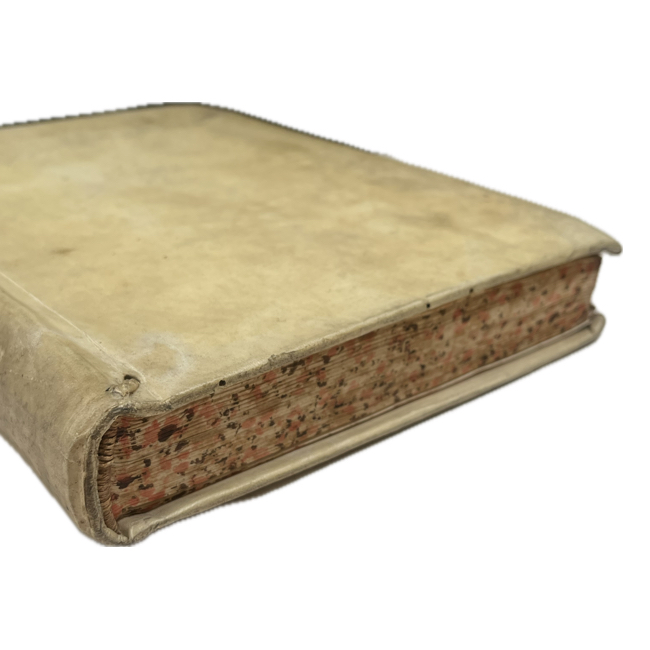 4º menor. xii, 368 p., vi, 59 p. Pergamino de época; título manuscrito en lomo; cantos moteados. Página de título con escudo grabado al centro (probablemente escudo familiar del mismo autor); encabezado y capitular ornamental en p.1; interiores muy limpios.