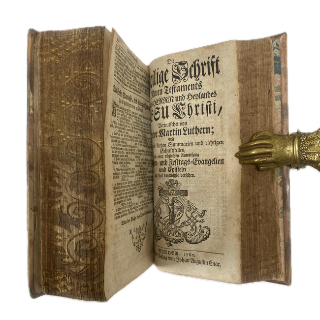 Edición alemana de la Biblia luterana, revisada y cotejada cuidadosamente con el texto original hebreo y griego, así como con diversas ediciones antiguas y modernas. Contiene el Antiguo y el Nuevo Testamento según la traducción de Martín Lutero, acompañada de una extensa Vorrede (prefacio) del teólogo Johann Franz Buddeus, que defiende la autoridad y pureza del texto bíblico luterano. Representa una de las ediciones críticas más esmeradas del pietismo alemán del siglo XVIII, destinada a un público culto y devoto que valoraba el estudio directo de las Escrituras.