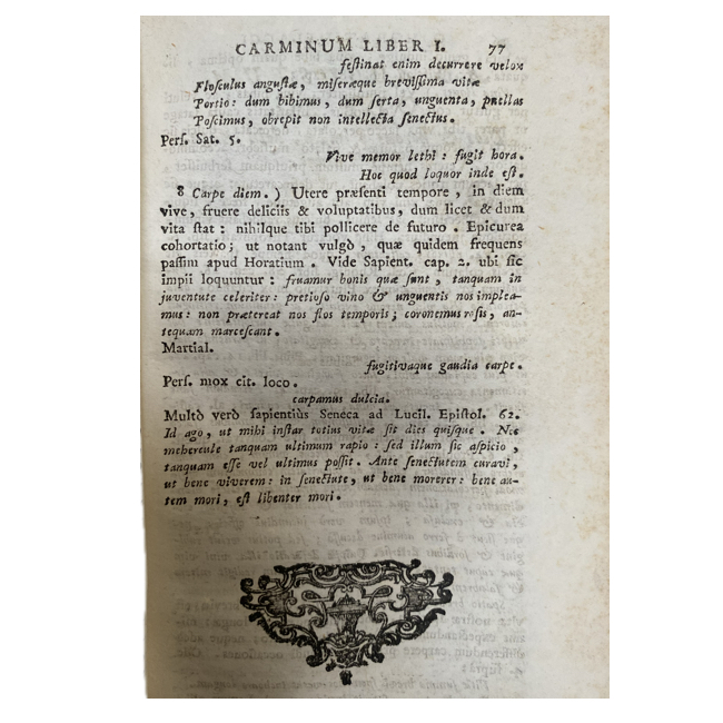 Conocido como Horacio, El autor vivió en el siglo 1 A.C. y se le considera el principal poeta lírico y satírico en lengua latina. En sus odas, hay una invitación a gozar del momento presente, ya que el día de mañana es incierto: «carpe diem».