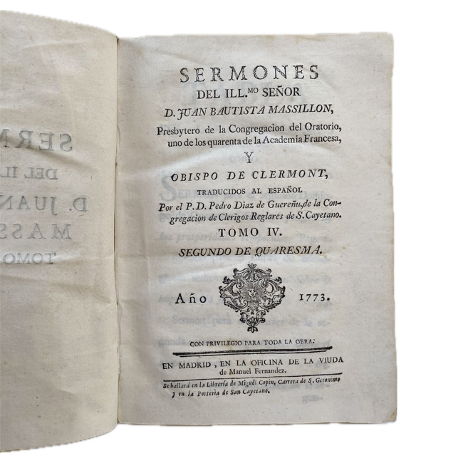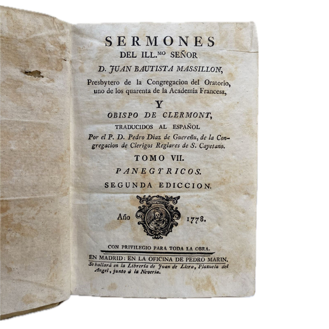 1773 – 1778. “Sermones del Ilmo. señor D. Juan Bautista Massillon”