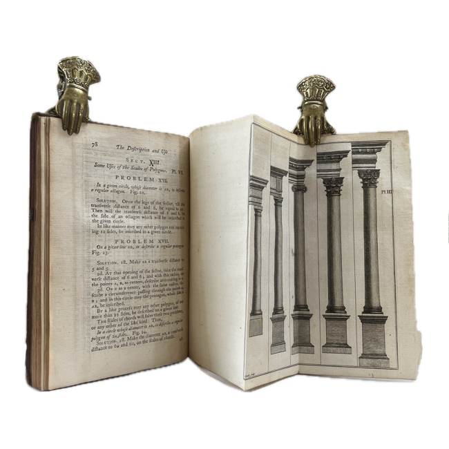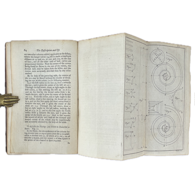 “…. Shewing some of their Uses in Arithmetic, Geometry, Trigonometry, Spherics, Architecturee, Surveying, geography, Perspective, &c. With an Appendix; containing The Description and Use of the Gunners Callipers. And The description of, and Prospects for the delineation of Ship-Guns and Sea ortars…prefixed a Brief Acount of Authors, who wrote on the Proportional Compasses and Sector”