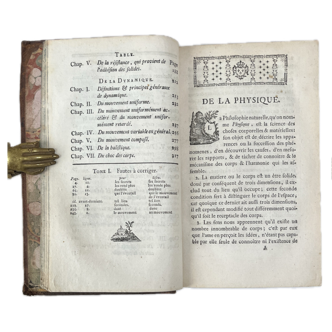 Tratado didáctico de física y mecánica aplicado a la formación de oficiales de artillería e ingeniería, concebido para las escuelas reales de Turín . La obra aborda principios de mecánica, dinámica y balística desde una perspectiva práctica, orientada al uso militar y técnico.  Las láminas desplegables ilustran máquinas, dispositivos y esquemas fundamentales para la comprensión de los principios expuestos.
