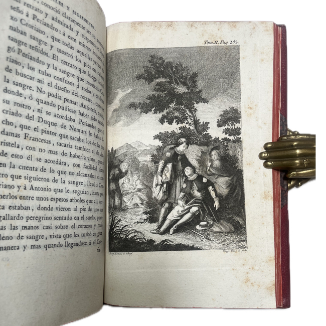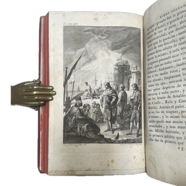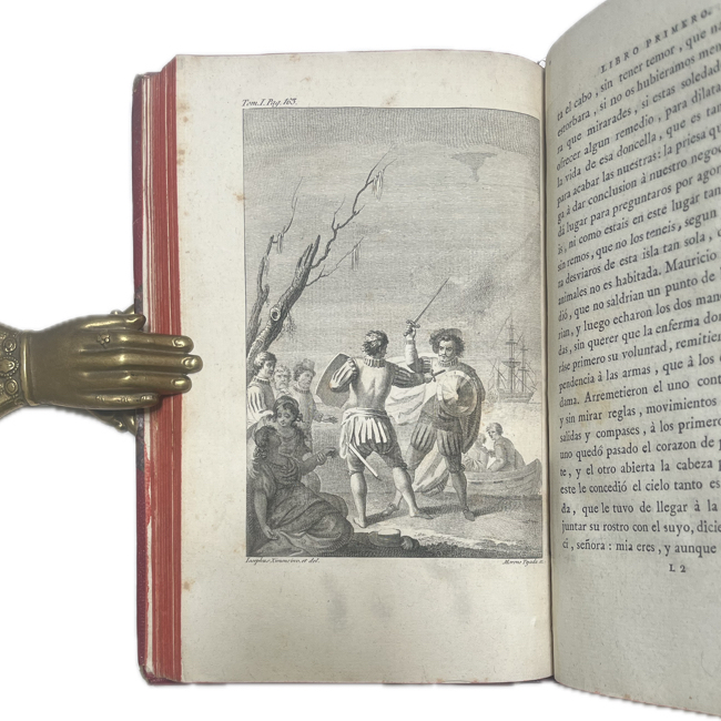 8º. 2 Tomos. Encuadernación holandesa con puntas siglo XIX ; nervios realzados y tejuelos en lomos; cantos teñidos en rojo. Obra dividida en cuatro libros, con un hermoso grabado al al inicio de cada libro. Interiores limpios y conservados.
