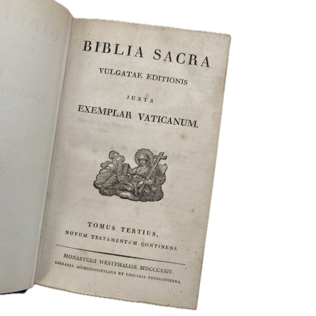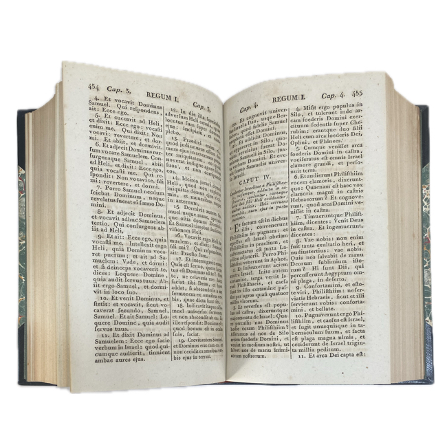 Los dos primeros tomos contienen en Antiguo Testamento y el tercer tomo contiene el Nuevo Testamento.