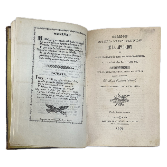 - Sermón que el la solemne función que la Santa Iglesia de Puebla dedica anualmente a Nuestra Señora de Guadalupe en su insigne y nacional colegiata. México, Imprenta de José Mariano Lara, 1858. 16p.