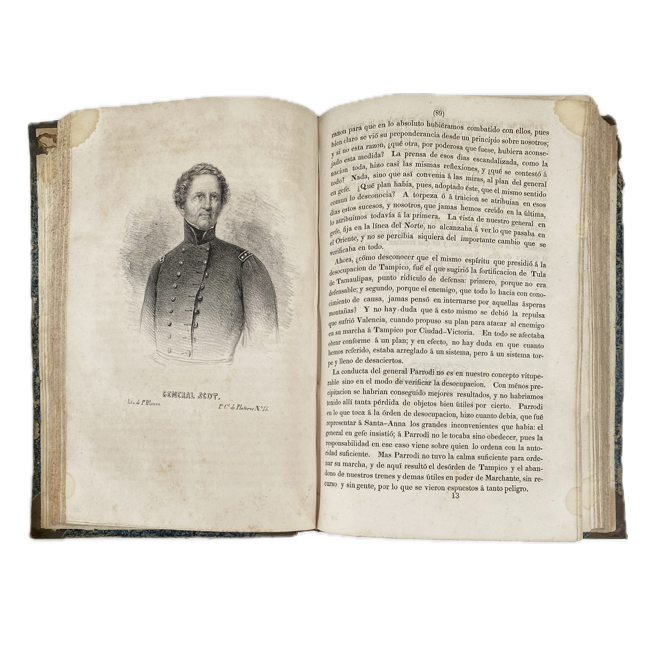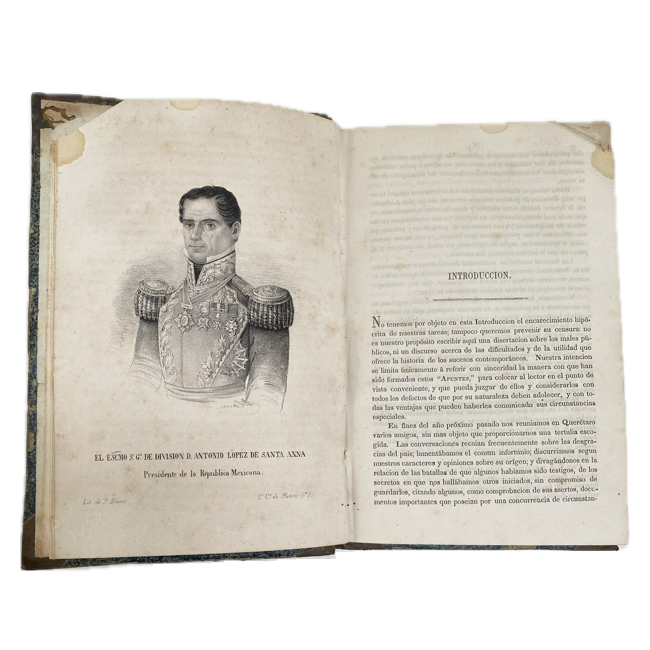 8º. [4] h., 401 p., [1] h. Holandesa de época, pastas con desgaste; lomo en piel con ornamentos dorados y tejuelo; pequeño faltante de papel en la esquina superior izquierda de la guarda anterior. Faltante de papel en esquina sup. derecha en primeras 8 h. que no afecta textos; pequeño rastro de humedad en esquinas superiores de primeras hojas; ligeras manchas de óxido en textos.
