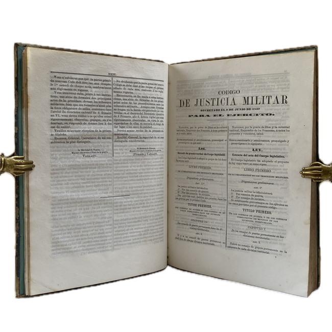 Se trata de una traducción al español publicada en México bajo el Imperio de Maximiliano I, que regulaba la justicia castrense francesa, incluyendo normas penales y disciplinarias para militares, traducción hecha por Manuel Zavala y José Ignacio Serrano, bajo encargo del propio Maximiliano.