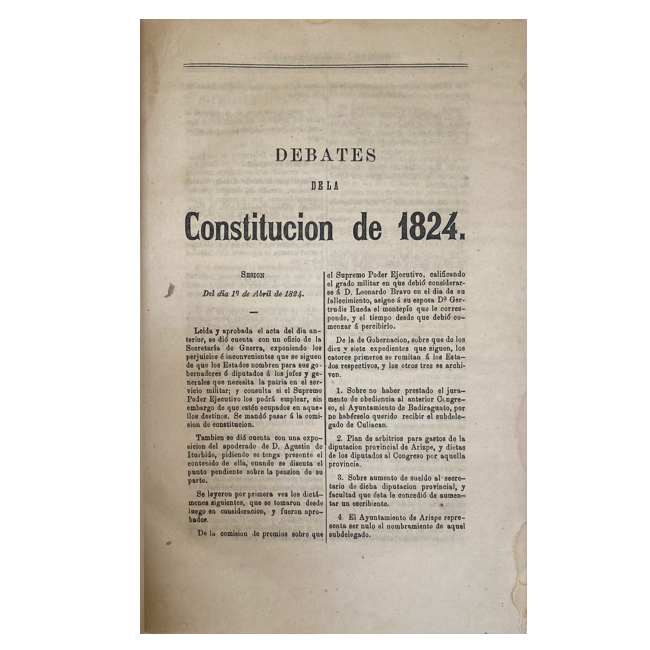 Incluye discursos, decretos, actas y debates de los Congresos Constituyentes y ordinarios de la República Mexicana.