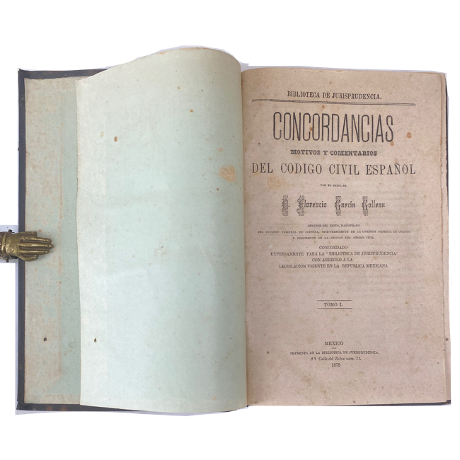 Publicación original: Madrid, 1852.  Reimpresión o edición posterior publicada en México.  Esta obra es fundamental para entender el Código Civil español, ya que  incluye concordancias (relación con otros textos legales), motivos (explicación de las razones para cada artículo) y comentarios (análisis del contenido del Código Civil).