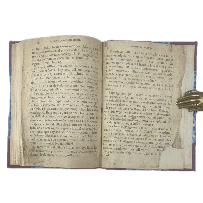 8º menor. 156 p. Holandesa con puntas.  Últimas dos hojas con daño que afecta un poco el texto; presumimos que hay una hoja faltante al final: el texto termina incompleto en la página 156 con la frase “de otro mo-“. Conserva las 4 láminas desplegables en color.