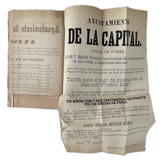- Bando sobre pago de puestos en el Mercado Porfirio Díaz, 1894