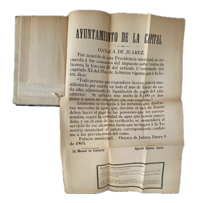 - Ordenanzas Municipales de la Ciudad de Oaxaca de Juárez, 1890, con un bando.