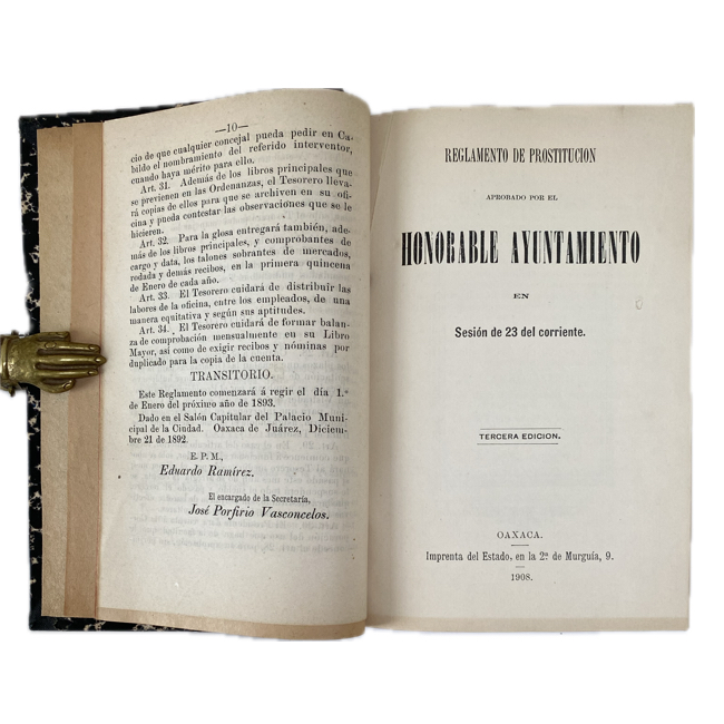 - Reglamento de Prostitución aprobado por el H. Ayuntamiento, 1908