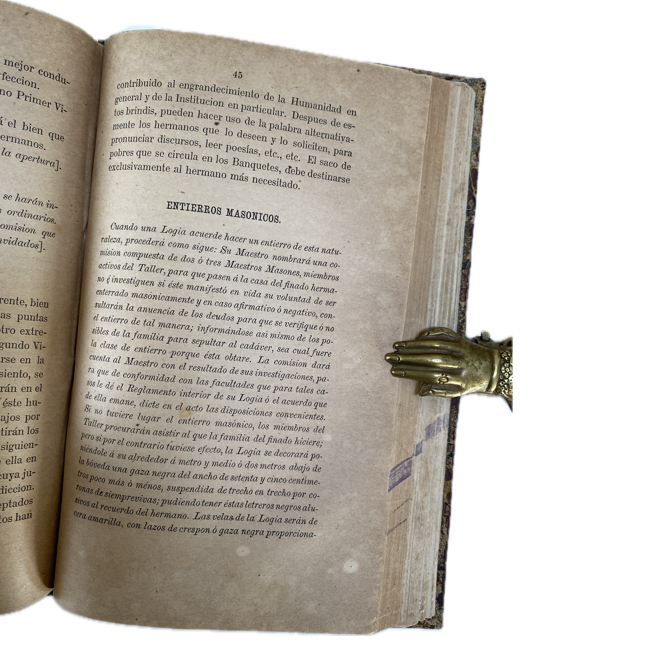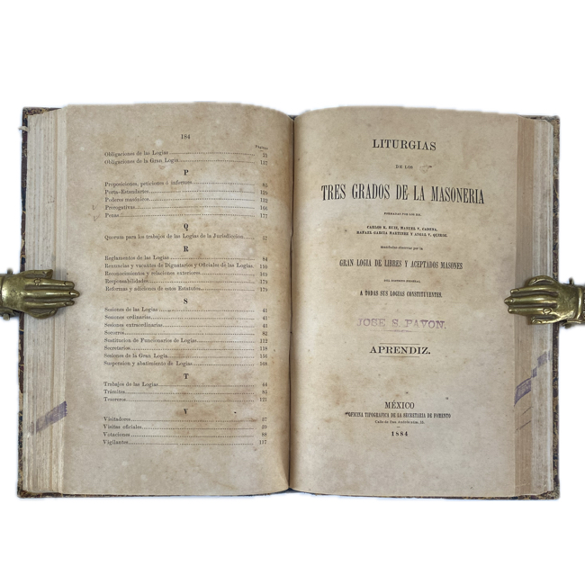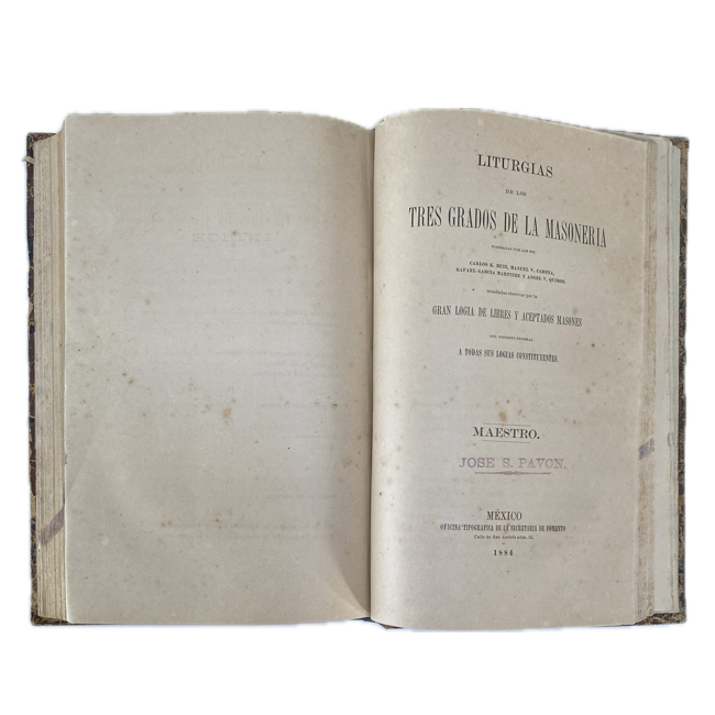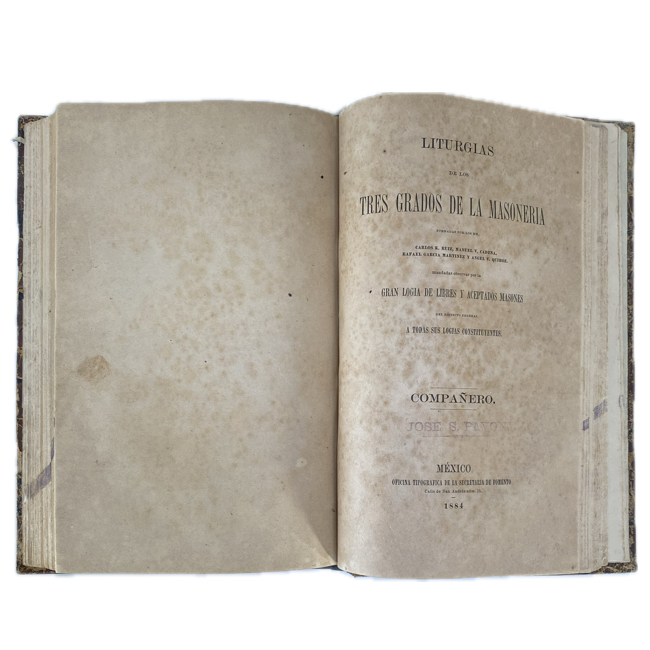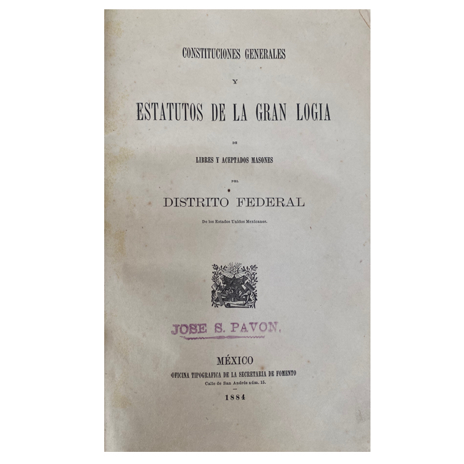 Conjunto compuesto por las constituciones de la Gran Logia del Distrito Federal y las liturgias correspondientes a los tres grados simbólicos de la masonería. Impreso por la Oficina Tipográfica de la Secretaría de Fomento, órgano oficial del gobierno, lo cual es poco habitual en este tipo de impresos, que generalmente eran concebidos para su distribución entre logias y miembros de la orden, y no para el comercio librero general.