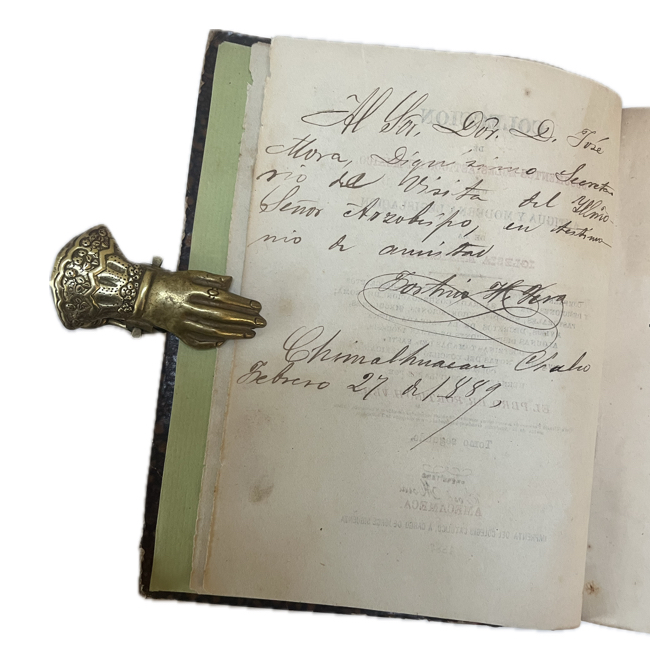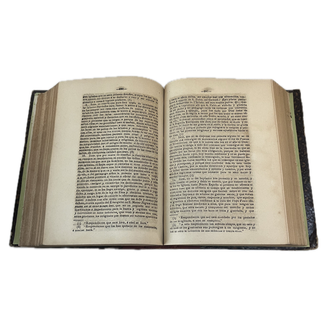 8º. Tres tomos. xvi, 720 p., [2] h. =  [8] h., 685 p. = xvi, 685 p. Holandesa de época; tomo III con distinto lomo; orillas desgastadas . Portadillas y páginas de título a dos tintas; dedicatoria manuscrita del autor en h.2 de T II (f.1889) “A… D. José Mora, dignísimo Secretario de Visita del Ilmo Señor Arzobispo, en testimonio de amistad. Fortino H. Vera [firma]. Chimalhuacan Chalco, Febrero 27 de 1889.”