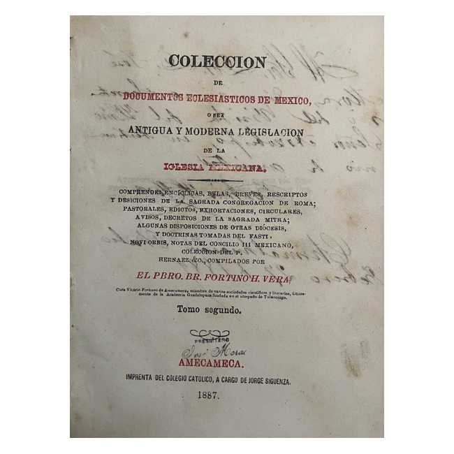 1887. VERA, Fortino H. “Colección de Documentos Eclesiásticos de México…”
