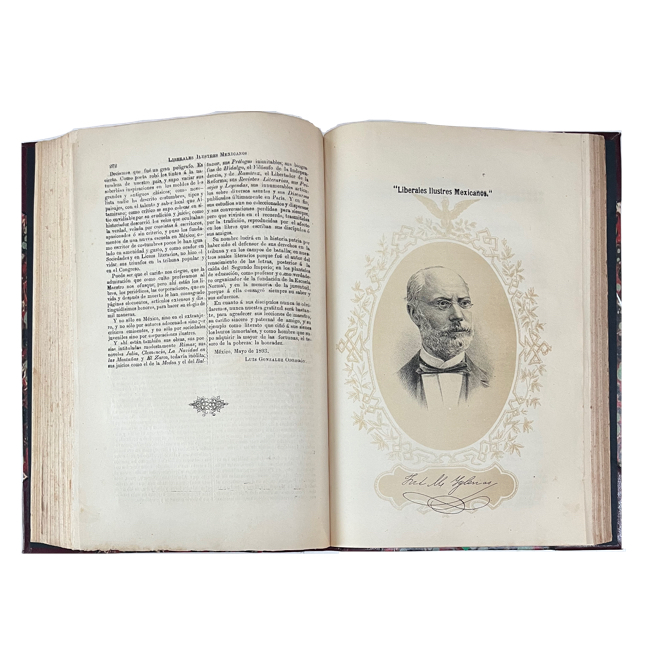 4º mayor. [3] h., 440 p. + índice. Holandesa con puntas, moderna; cinco nervios realzados y dorados en lomo. Página de título a dos tintas; textos a dos columnas. 36 láminas fuera de numeración con retratos; frontispicio alegrótico.