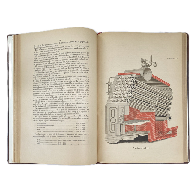 La obra presenta una clasificación general de los distintos tipos de calderas usadas en la marina y la industria.