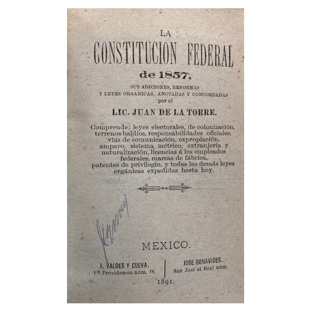 México, J. Valdes y Cueva | José Benavides, 1891.
