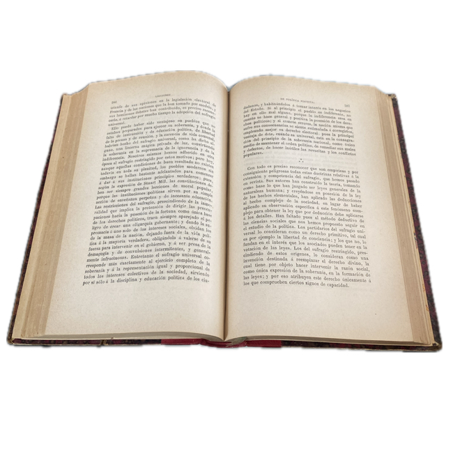 8º mayor. 495 p., Frontispicio grabado (retrato de Lastarria). Encuadernación holandesa de época, lomo en piel con nervios y dorados, tapas marmoleadas. Surco de polilla en las primeras 79 páginas, que afecta el margen inferior pero sin comprometer la lectura. Interior con leve oxidación; completo y firme.