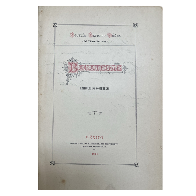 1894. NUÑEZ, Agustín Alfredo. “Bagatelas. Artículos de Costumbres”