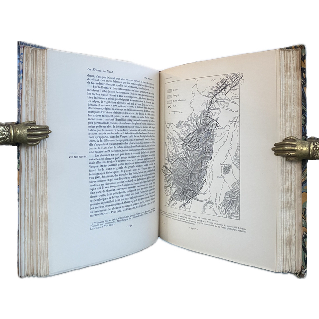 Vol I: 2ª edición, 1905.  “Tableau de la géographie de la France”. – P. Vidal de la Blache. 394 p. 63 ilustraciones intercaladas en textos, algunas de página completa; mapa desplegable en color (Francia y Europa central)